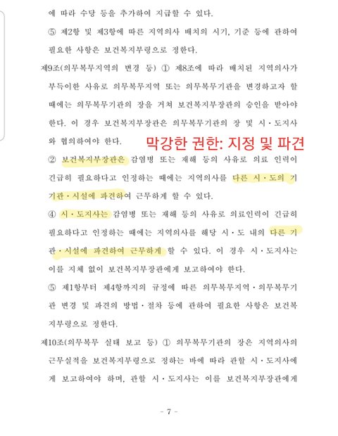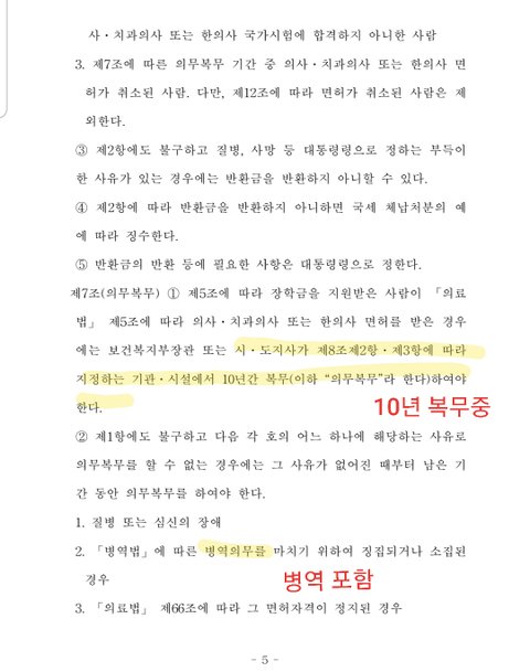 진짜 사명감으로 그 과를 전공하는 의사들의 자존심에 생채기를 내고 10년의 의무복무를 시킨다고 한다. 그동안 수련병원 순환근무를 하고 나면 10년 중 의무복무 기간은 더 짧아진다.