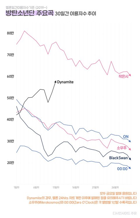 +얘드라 이건 발매 후 한달추이를 나타낸거라 작은시가 더 높은거야 작둥이는 서수 개편 전 기록이고 다마둥은 개편 후 기록은 물론 1시에 발매한 영어곡이잖아!