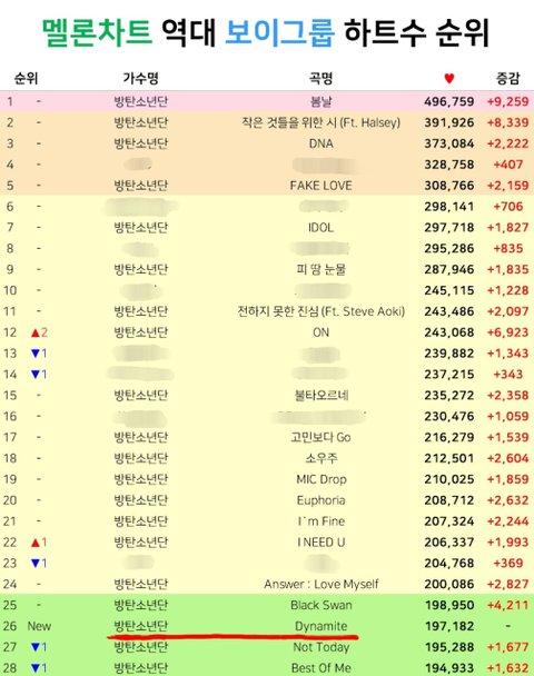 다이너마이트 서수 역대 남돌 하트 26위! 쭉쭉 올리자 ㅎㅇㅌ