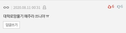 오늘도 저번에 추천 받았던 주제인 대학로망 푸는글 가져와봤어! 다들 댓글 많이 달아줘❤ 그리고 혹시 보고싶은 주제 있으면 댓글로 적어줘! ฅ^._.^ฅ