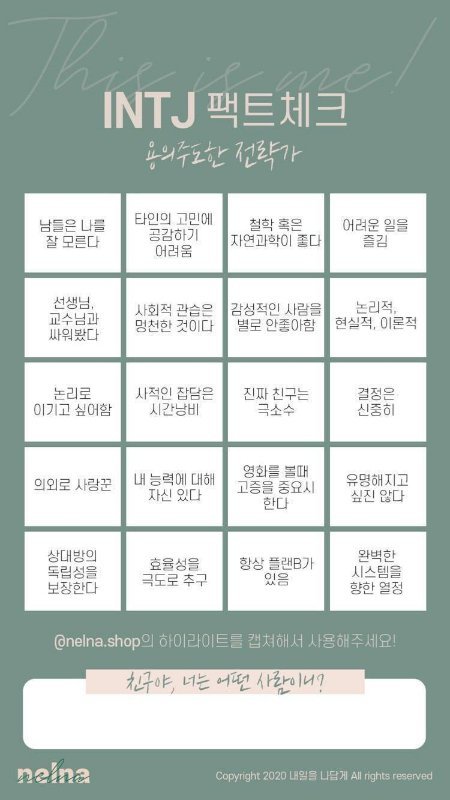 나 intj 나왔는데 아닌거같음..
