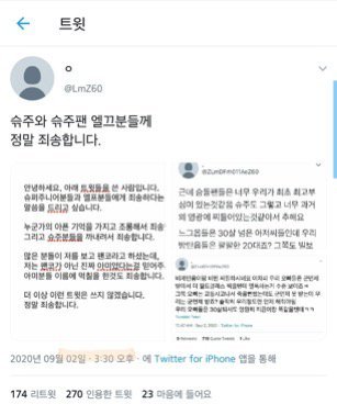자 니들이 문제라고 아미 사과하라고 실트 올린 그 개 ㅈ 같은 글.