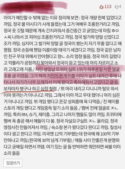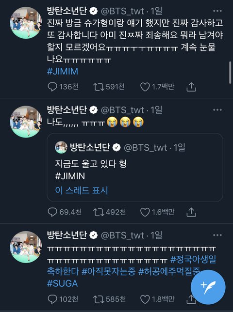 아니 나 지민생일때 실트로 까였다는건 알았는데 이렇게 까인건줄은 몰랐어... 나 아미아니야 근데 이건 진짜 너무하다 방탄은 사람아닌가