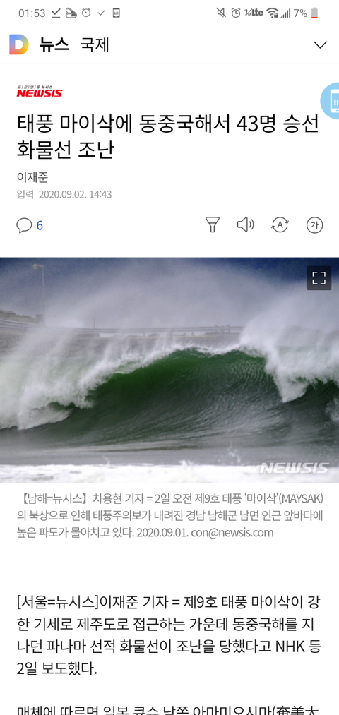 태풍때문에 지금 43명 실종됨....