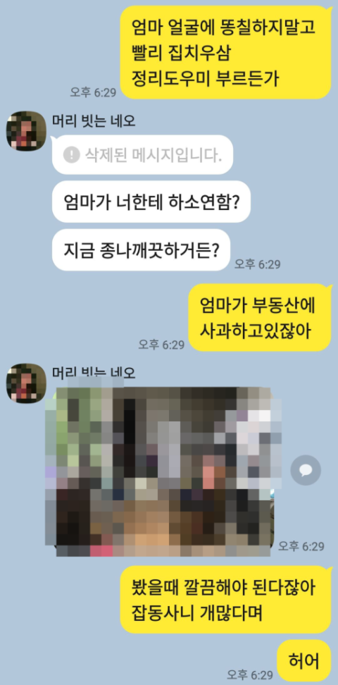 안새밖샌이라고 결국엔 부모 얼굴에 먹칠하는게 너무 빡쳐서 언니한테 카톡을 했음