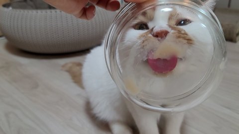 츄르 먹는 순간 밥그릇을 들었을 뿐인데 귀여움이 와르르 ㅎㅎㅎ
