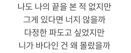 "다정한 파도고 싶었지만 너가 바다인걸 왜 몰랐을까"