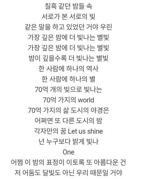 솔직히 내가 거듭해서 말하지만 아미가 아니었을적에도 방탄가사는 따로 찾아봤을 정도로 이쁜게 많아!