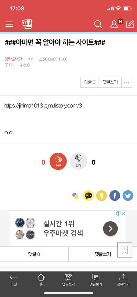 지민이 안티 블로그하나 제한먹고 계정 하나 새로팠다고 애걸복걸중임