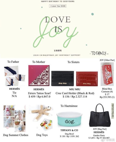 전부 조이 취향에 맞춰서 강아지랑 가족들 선물까지
