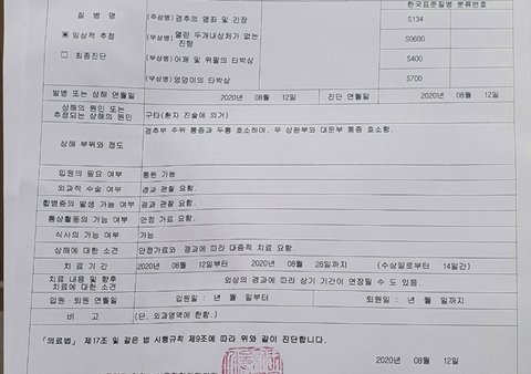 전 아직도 그때 생긴 어깨 염좌로 인해 치료 받고 있습니다