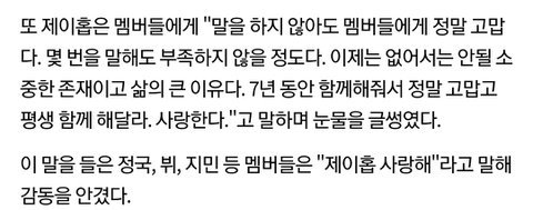 ㅠㅠㅠㅠ제이홉이 멤버들한테 이 말하니깐 ㅠㅠㅠ