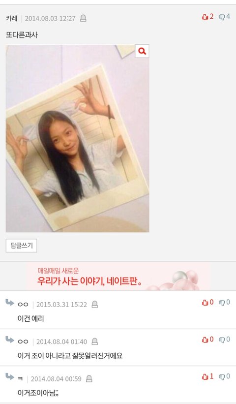 예리데뷔전에 레벨글에 예리사진이 올라온것도 신기함