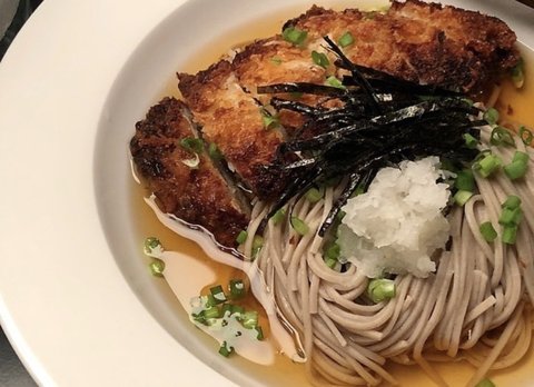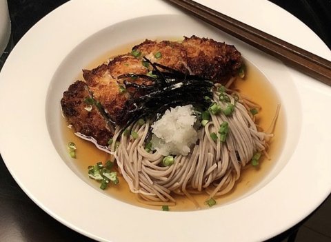 시원하게 장국 만들어서 메밀국수와 돈까스