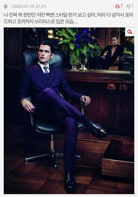 댓글마다 뷔 쓰리피스 정장에 머리 올린 빡센