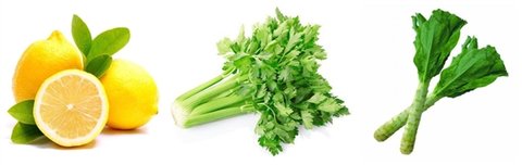 셀러리 50g, 줄기상추 90g, 레몬 70g