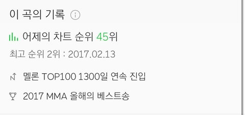 발매 3년이 지났으나 발매 후 멜론차트에서 내려온적 한 번 도 없음