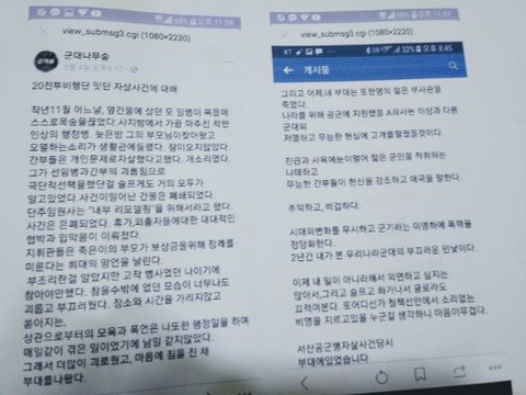 군대에서의 자살을 개인탓으로 몰아가고