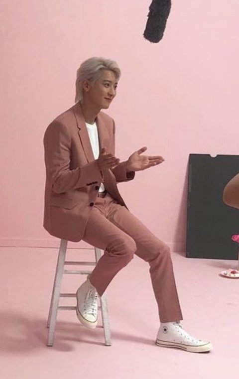핑크수트에 컨버스라니요