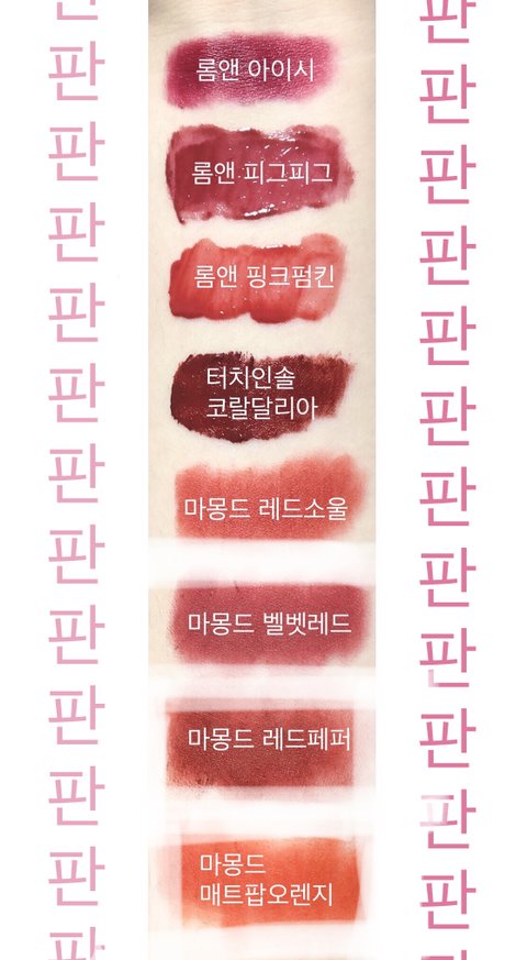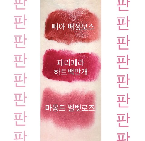 이중에 피그피그랑 벨벳레드 벨벳로즈 조카 추천함 쌩얼에 발라도 안뜨고 ㅈㄴ이뻥 뮤트톤애들아 꼭 사... 글고 코랄달리아 너무 고추장처럼 나왔는데 내가 양조절을 실패해서;-; 얇게 펴바르면 갈웜애들이 조카 탐냄 진짜 이뻐 근데 용기가 좀 잘샘 하트백만개는 착색 ㅈㄴ 안이쁜 보랏빛 핫핑크니까 참고행