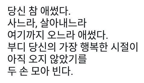 진짜 나 오늘 얘 아니였으면 집에도 안가고 계속 울었을텐데 얘 덕분에 그래도 오늘은 기분좋게 잘 수 있을거같아 끝까지 뭔 이유때문에 울었는지 안물어봐줘서 너무 고마움