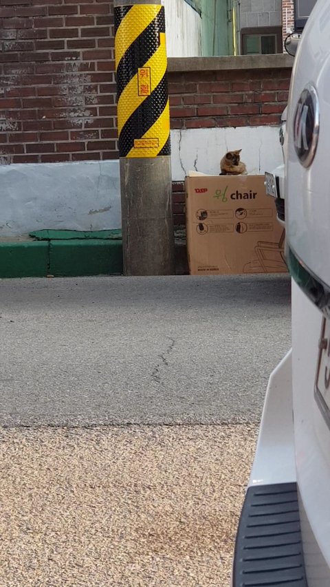 박스가 높아 새끼들을 못 꺼내고 안절 부절 하는 어미고양이