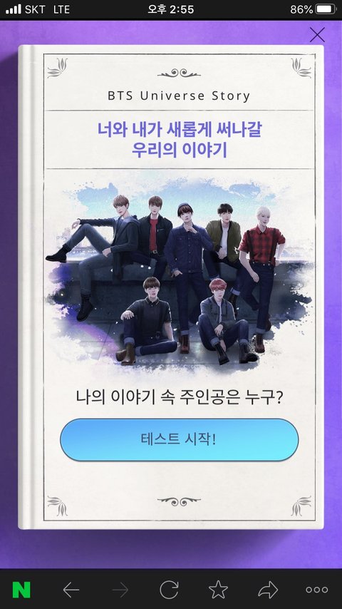 bts 유니버스 스토리 홈페이지에서 심리테스트 하고 있길래..