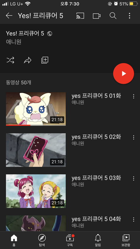 유튜브에 yes 프리큐어 1화부터 막화까지 다 올려져있어