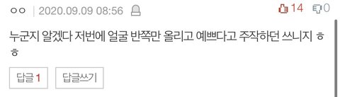 누군지 알겠다 저번에 얼굴 반쪽만 올리고 예쁘다고 주작하던 쓰니지 ㅎㅎ