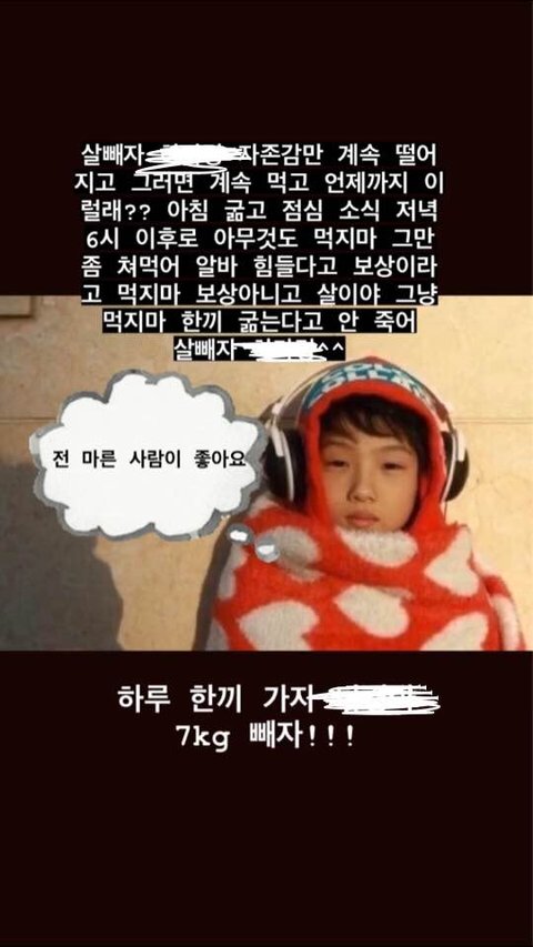 내가 편집해서 배경화면 했다..지성이가 살 빼라고 하니까 빼야지....앞자리수가 바뀌고 인준이와 몸무게가 비슷해지니 정신이 확 들더라고..? 아 아니면 내가 인준이보다 더 나갈 수도 있어서....ㅋㅋ..어쨋든 오늘부터 다이어트다 색칠한건 이름이라 색칠했엉!!