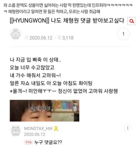 사실 글 쓰는 나도 인프피라 인프피 아이돌에 아쥬 많은 관심이 있으므로 인프피 아이돌 소개도 해주면 더 고마울듯 해ㅋㅋㅋ 일화같은것도 좋구