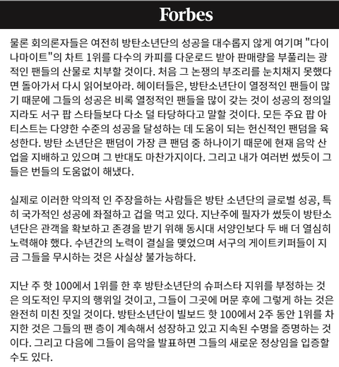 https://www.forbes.com/sites/bryanrolli/2020/09/08/bts-dynamite-no-1-billboard-hot-100-new-normal/ 어휴 걔네 갸루쓰 되겄어요~