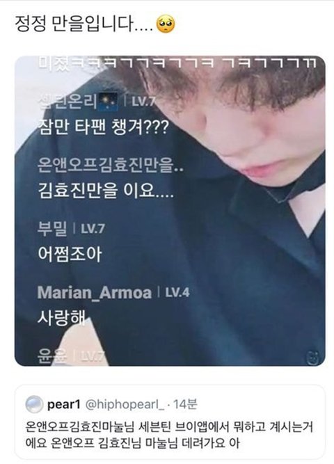 세븐틴브이앱에 침투한 "온앤오프김효진마눌"님