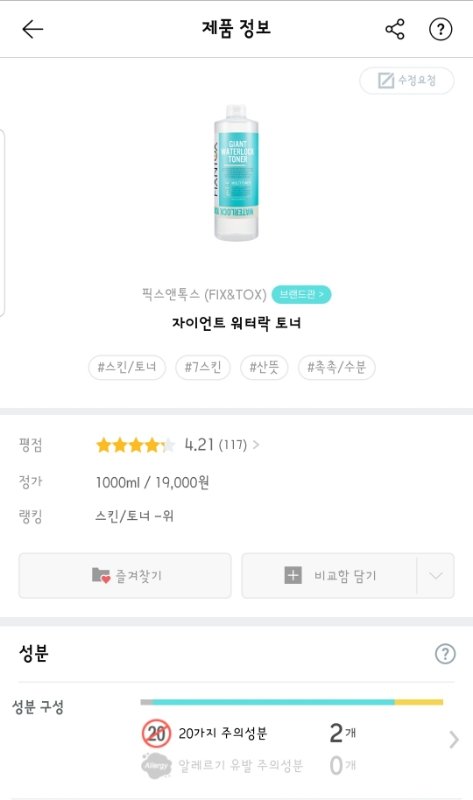 평점이 4.21이고 20가지 주의성분 2개 있대 1000ml에 19000원인데 쿠팡으로 좀 더 싸게 살거야 이정도면 사도 돈 아깝진 않겠지?