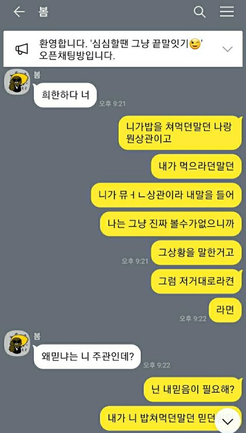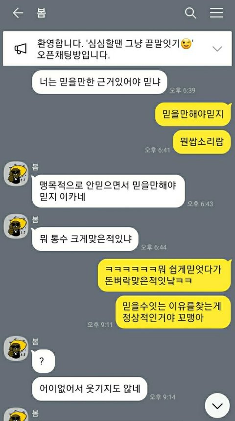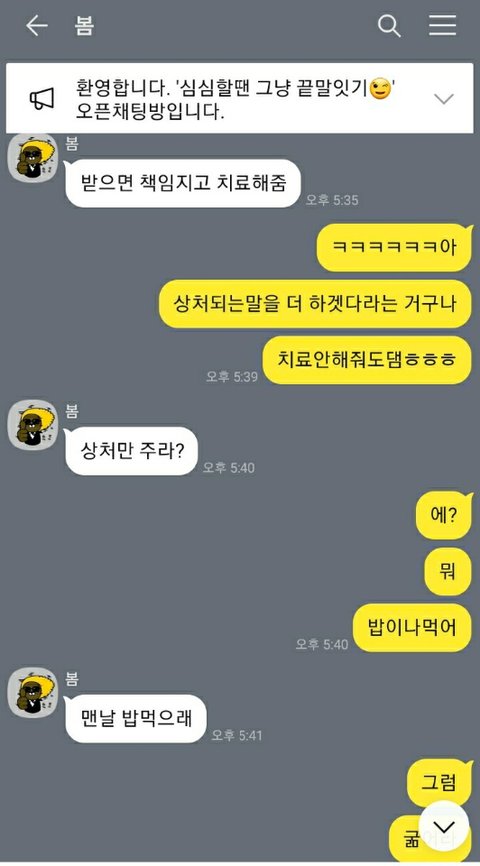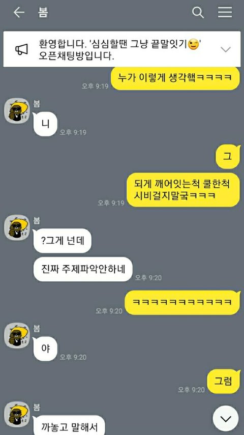 아니진짜 너무 어이가 없어서요. 한 이틀정도 심심해서 끝말잇기하다가 그냥 이런저런 얘기도 했거든요. 지금은 일 쉬고 있다고 얘기하니까 백수라 놀리는 투로 얘기하더라구요.
