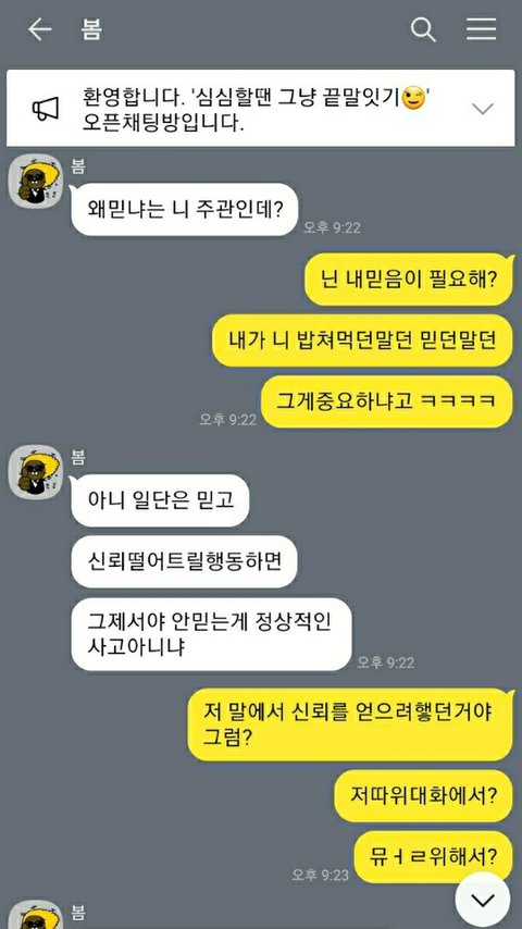근데 갑자기 지를 믿냐 안믿냐를 운운하더니 가르치려들고 저러네요.