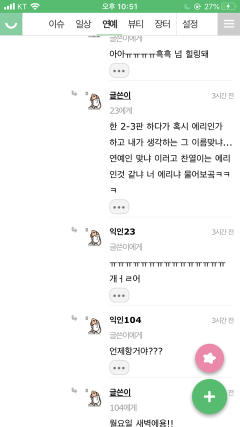 미쳤네.. 어몽어스 2시간 반 3시간 같이 했는데 팬이 찬열 닉넴 보고 엑소엘이냐 물어보고 찬열도 너 찐 에리냐 물어보고 최애 누구냐고 물어보고 자기 찬열이라고 오늘 리슨 와서 인증함 ㅈㄴ 성덕이네.. 찬열이가 왜 좋냐 칭찬해주니까 더 해달라고 어쩌고저쩌고 조카 부럽다... https://instiz.net/name_enter/73525507