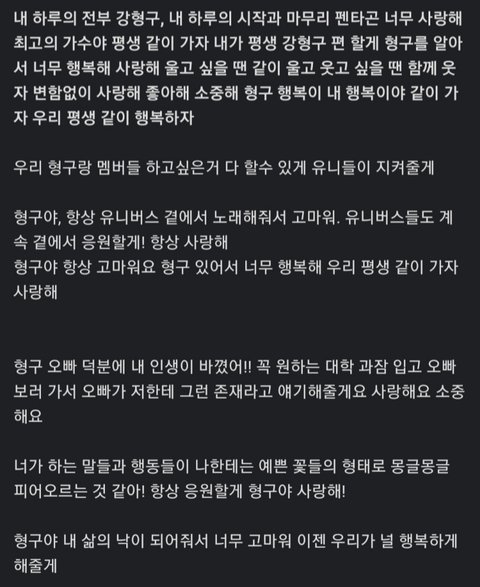 유니들 시인이야? 다들 형구 닮아서 그런지 표현들도 너무 이뻐 ㅠㅠ