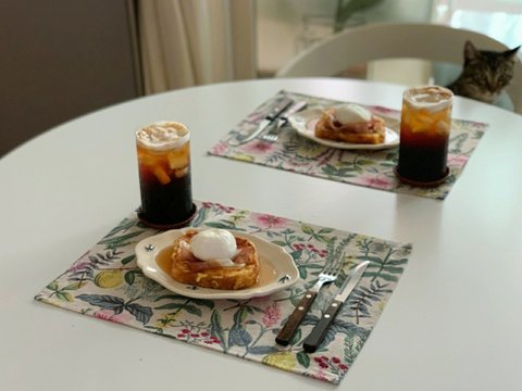 오랫만에 메이플시럽도 잔뜩 부어 달콤한 아침식사