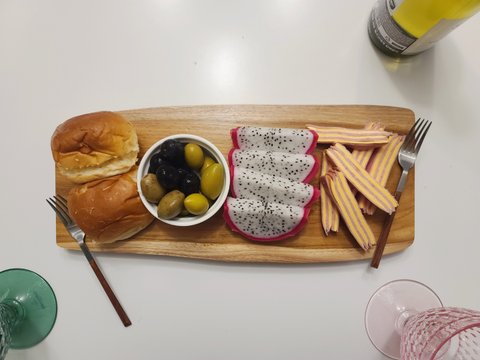 다녀왔던 여행들을 떠올리며 모닝빵과 화이트와인으로 기내식 기분을 내요