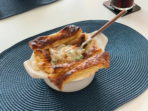페이스트리 아래 닭가슴살을 넣은 크림치킨이 짠!