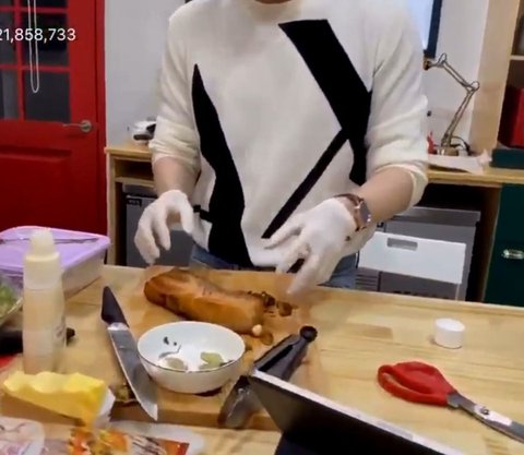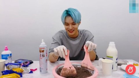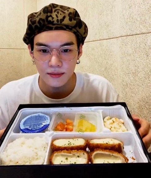 오랜만에 팬들이랑 밥먹는 브이앱한다고 신나서 돈가스 소스 뜯는데
