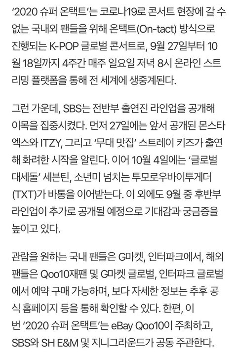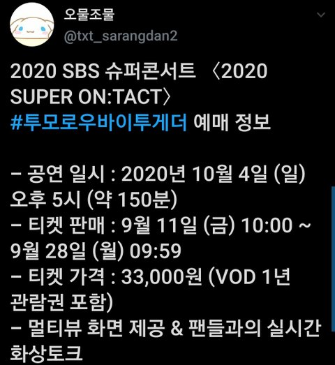 슈퍼콘서트 10월4일 TXT 출격