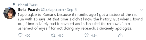 이분은 그후 트위터 및 틱톡에 정말 모르고 그랬고 정말 죄송하다고 하고 문신을 지우거나 커버업(문신위에 문신으로 덮는것.)하겠다고 했습니다. 하지만 우리 잼민이분들은 계속 도가 넘는 발언과 욕을 하였고, 지켜보던 외국인들도 적당히하라고 되려 한국을 욕하고 있습니다.