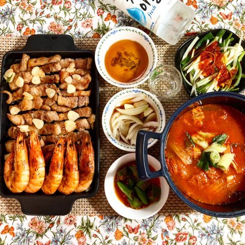 8. 코스트코에서 사온 새우와 삼겹살로 근사한 저녁 먹었네요 빠질 수 없는 소주!