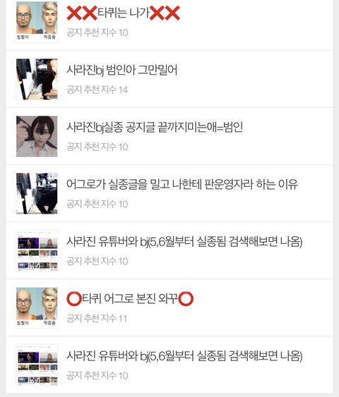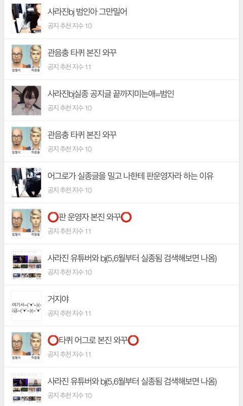근데 어제 저격먹고 찔렸는지 원래 실종공지 바로 위에 스밍공지 올렸는데 저격먹고 난뒤 나중에 중간에 지가 어그로 끈거 공지 올려서 자연스레 어그로끈 공지위에 스밍공지 올린것처럼함