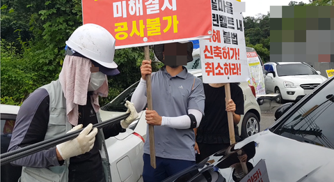 저건 작년 7월 뉴스고 지금까지 1년이 넘도록 공사 진도가 전혀 안 나가는 상황입니다. 그 사이 저쪽은 공사 막는 방법이 더 심해지고 있고요.