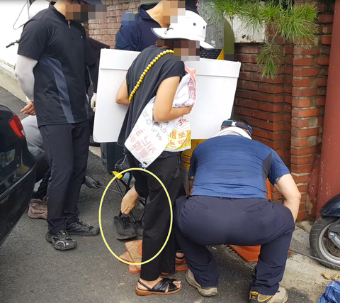 (현장으로 철근 자재를 옮기는데 일부로 신발 벗고 맨발을 갖다 대기도 합니다)