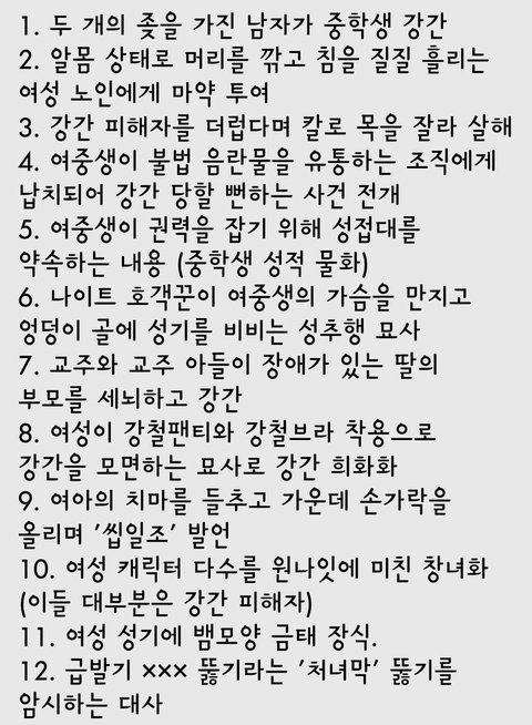 성범죄 희화하면서 자극적으로 표현하는 만화래..;;