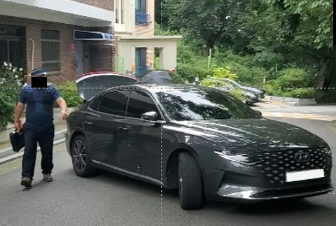 공사관계자 출근시간에 1시간 가량 마을 입구 한가운데에 무단 주차하여 통행 방해